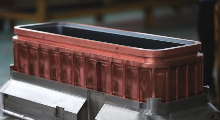 To meet the parameter requirements in high-speed continuous casting production, CCM has designed and produced copper moulds with dot-like and honeycomb structures.